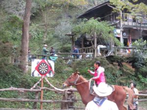 アリーナではダーツと帽子取りゲームをしました。マロンはハミなしでトライ!3才の女の子もダーツに挑戦!帽子取りもギリギリまでカラダを傾け見事にキャッチしていました。